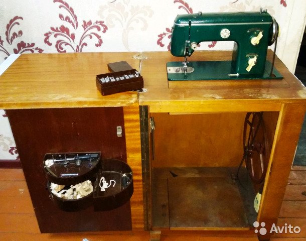 Ножная немецкая машинка нуждается в замене ремня. А так полностью все работает. Все лапки в комплекте. Не очень эстетичный внешний вид тумбы под машинку, но при желании можно реставрировать. Самовывоз с центрального района. BuyReklama.ru